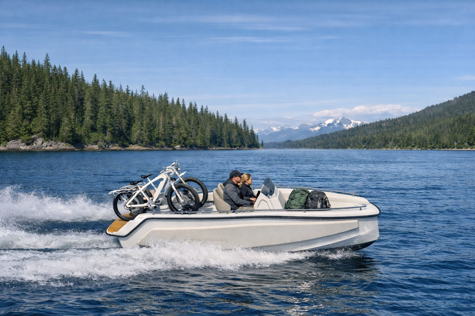 Coming standard with a ski or wake board tow point, the Pacifica 17 offers excellent sportsboat performance. An optional folding bimini gives great sun protection, guaranteeing a great day out on the water. Running surface protection for operation in rivers or beach landings is provided by an optional, removable Kevlar-E-glass hull shoe.